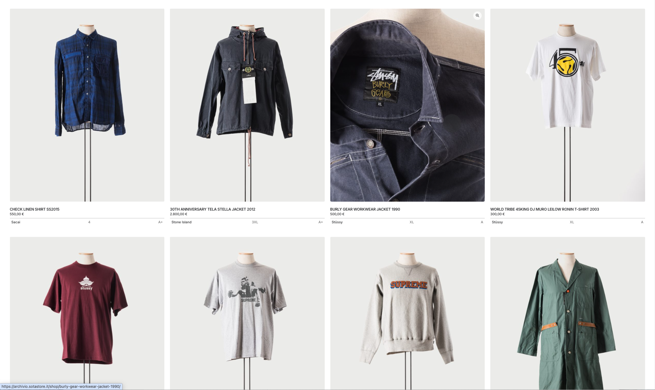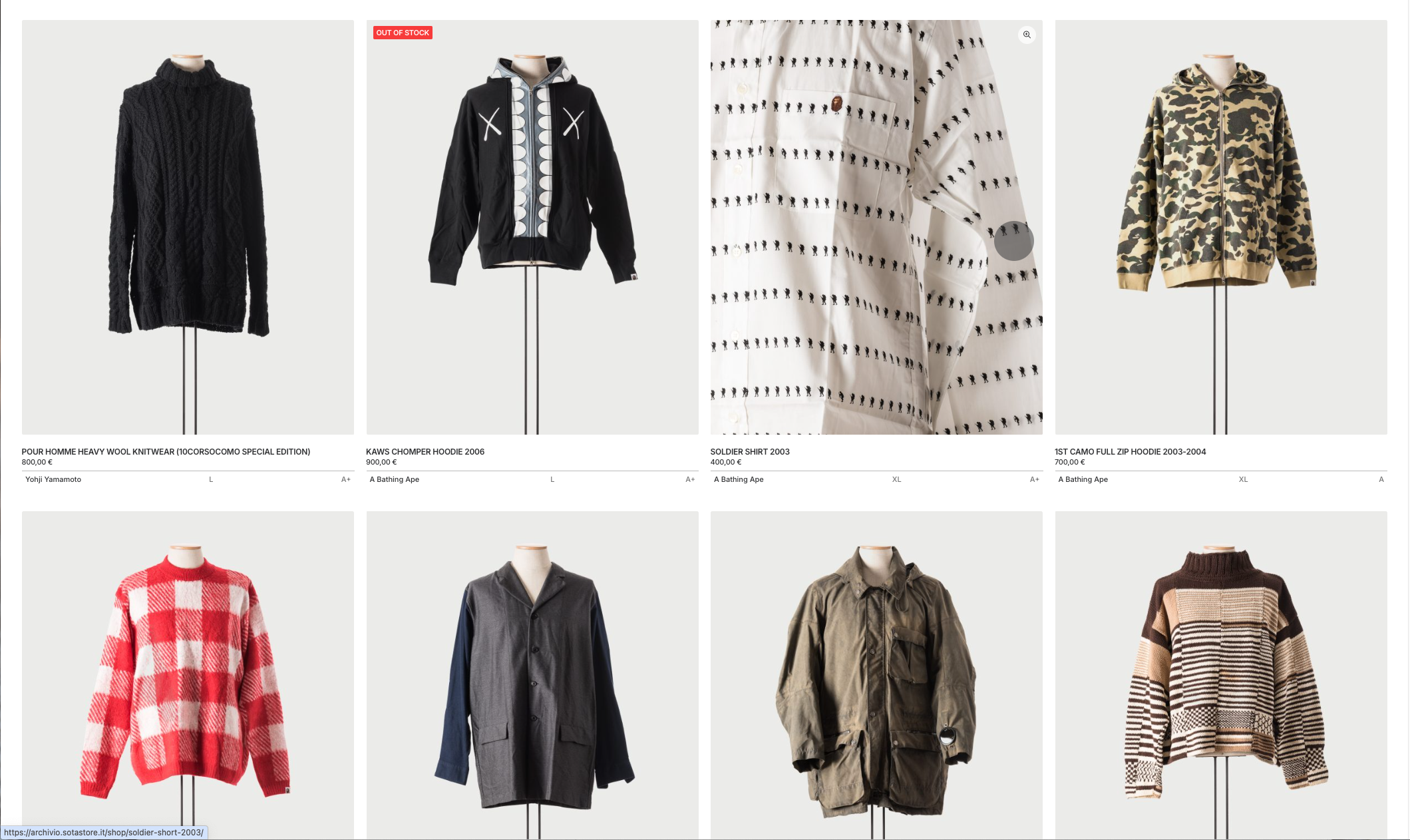 Archivio SOTA is an archive-gallery, rare clothes and sneakers collections and a pop-up space. The photography supported the brand image for products, website, e-commerce, pop-up, social media, perfectly fit the authority of the brand.